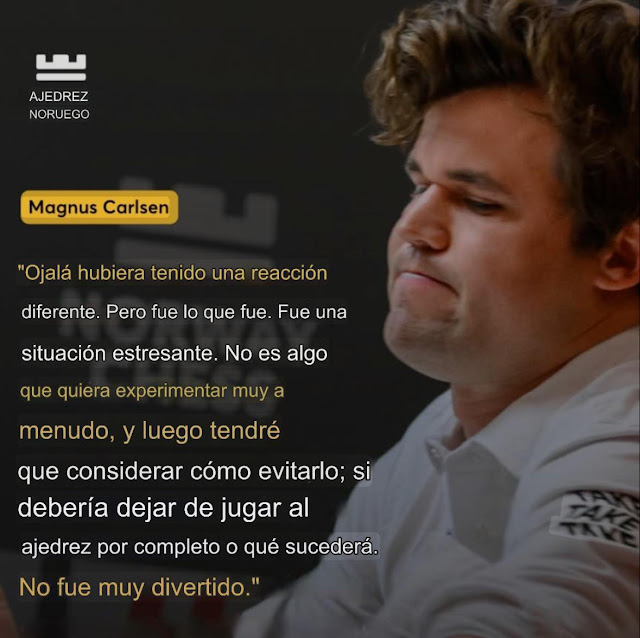 En general, me siento bien en este torneo, pero ya no creo que sea divertido jugar, y ese es el problema. Estoy sentado en medio de la partida, pensando que estoy en la misma posición que tantas veces. Simplemente avanza lentamente. No me parece emocionante, y sé que puedo jugar muy bien. Es satisfactorio jugar bien, pero luego me derrumbé hacia el final y mostré grandes debilidades; Gukesh lucha muy bien"